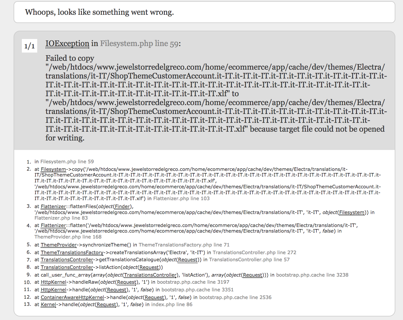 cirovi Posted May 10, 2017 Share Posted May 10, 2017 Ciao a tutti, ho un gravissimo problema che non mi permette di andare online con il sito. Ho usato la versione 1.7.0.5 di Prestashop ed installato il tema Electra, il problema è che quando vado su Internazionale-->Traduzioni e seleziono il tema Electra con lingua Italiano mi esce l'errore che allego. Qualcuno mi può aiutare? Grazie a tutti ragazzi! Link to comment Share on other sites More sharing options...