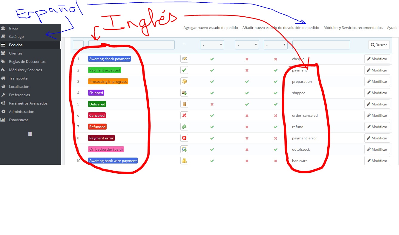 togoma Posted May 13, 2017 Share Posted May 13, 2017 Soy principiante con Prestashop y el BackOffice me aparece mezclado con textos en español y textos en ingles. Tengo configuradas las opciones todas para español pero algo debo estar haciendo mal cuando no consigo dejarlo todo en español, os dejo unos ejemplos para ver si me podéis ayudar. Gracias Link to comment Share on other sites More sharing options...
