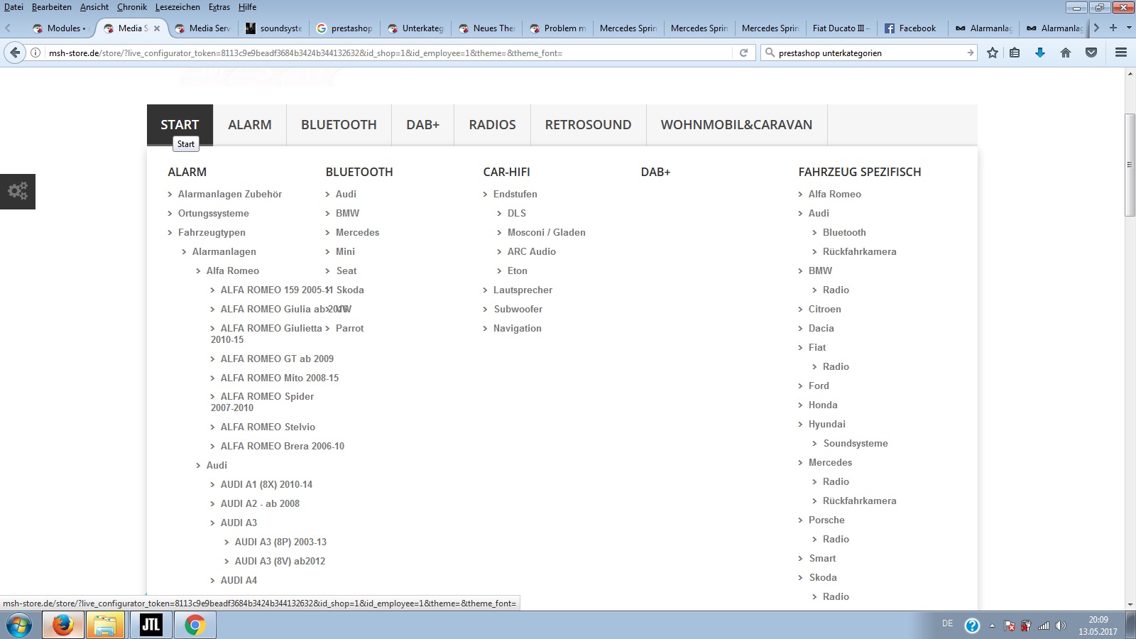 rictools Posted May 17, 2017 Share Posted May 17, 2017 Deine Kategoriestruktur ist schwer nachvollziehbar, beim Klick auf Start gibt es "Radios", in der Navileiste dagegen "Car-Hifi", was ist da der Unterschied? Im Grunde ist "Start" überflüssig, packe dafür lieber noch eine Hauptkategorie mehr in die Leiste. Dann mußt du entscheiden, ob dann nur die erste Unterkategorieebene oder weitere angezeigt werden sollen, das kannst du per css mit "display: none;" regeln (mit Untersuchen / Firebug bekommst du raus, welche Tags du ausblenden mußt). Das Thema haben wir übrigens sehr oft ... Link to comment Share on other sites More sharing options...