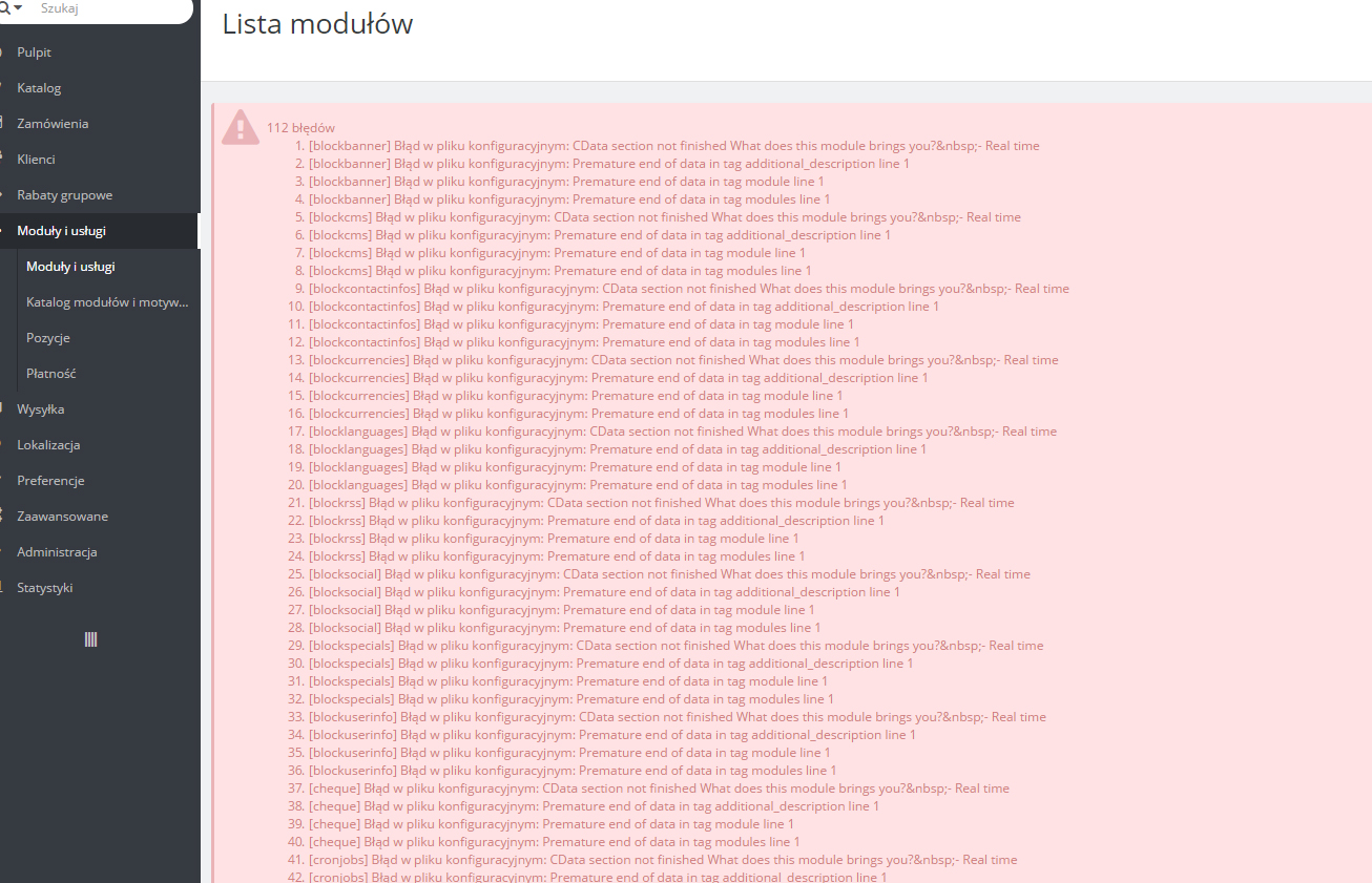 magisterson Posted May 15, 2017 Share Posted May 15, 2017 Wcześniej nie występował. Dodatkowo w katalogu /config/ pojawiła się lista dziwnych plików bez rozszerzenia które są puste (załączam je). nie wiem o co chodzi, mam błąd 500 przy przejściu prawie na każdą zakładkę w panelu admina. Jedynie otwarcie "katalog" nie wydołuje błędu i otwarcie "moduły", ale przy przejściu w "moduły" mam listę błędów, praktycznie w każdym module. Przed chwilą były to 2 moduły teraz wszystkie. Czy to wynik prac na serwerze z SSL czy coś innego? Dziwna sprawa... zmiana na TRUE w DEV MODE nic nie pomaga a myślałem że pokaże mi się gdzie leży błąd, nadal mam pusta stronę i "HTTP ERROR 500". Link to comment Share on other sites More sharing options...