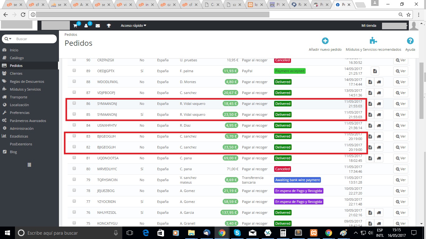 Sometimes when ordering, in the backoffice 2 orders are generated but with different Id, Products, amount but the same date and reference.