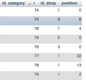 TRESSET Posted May 18, 2017 Share Posted May 18, 2017 (edited) Good afternoon I have a multistore and I have added some new categories. By default, the categories are added only to the main store, but not to the others. Now in the back office I must enter on each one, and assign it to the other stores. I was wondering if there is a quick way to do it with SQL. In the `ps_category_shop` table I have the `id_category` and the `id_shop`. Attached picture. In the picture, category 74 is assigned to shops 1 and 2. Category 76 is assigned to shops 1, 2 and 3. Category 77, 78, 79... are only assigned to the shop 1. I would like all categories to be assigned to the three shops. How could I do this? And if they had all the same position in all the stores, I would be the happiest person in the world. Prestashop should have more massive actions. Thank you very much!! Edited May 19, 2017 by TRESSET (see edit history) Link to comment Share on other sites More sharing options...