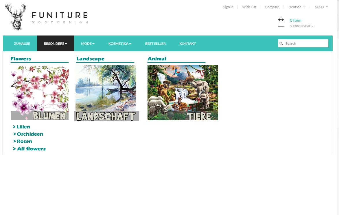 Schlee Posted June 2, 2017 Author Share Posted June 2, 2017 Danke rictools. In der Tat habe ich mich einmal mehr sehr unpräzise formuliert. Ich will gerne ein Top Menü haben, bei dem ich der Unterkategorie bzw. mehrere Unterkategorien ein Bild unterlegen kann, sodass die Unterkategorie bildlich untermalt wird und so einen optischen Anreizt gibt. Ganz toll wäre wenn es möglich wäre, dass weitere Unter-Unterkategorie mit einem (etwas kleinerem) Bild hinterlegt werden kann. Ich verkaufe zum Beispiel Leinwandbilder. Unterkategorien sind Tiere, Städte usw. - exakt diese Unterkategorien möchte ich gerne mit jeweils dazu passende Bilder hinterlegen. Siehe dieses von mir erstellte Beispiel: Ich hoffe ich konnte mich verständlich Ausdrücken Grazie mille Schlee Link to comment Share on other sites More sharing options...