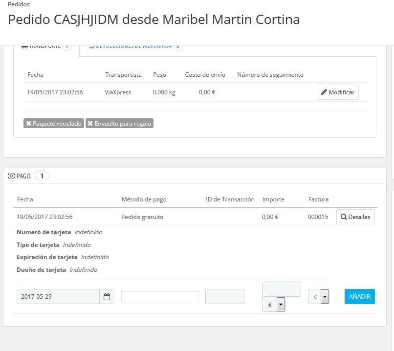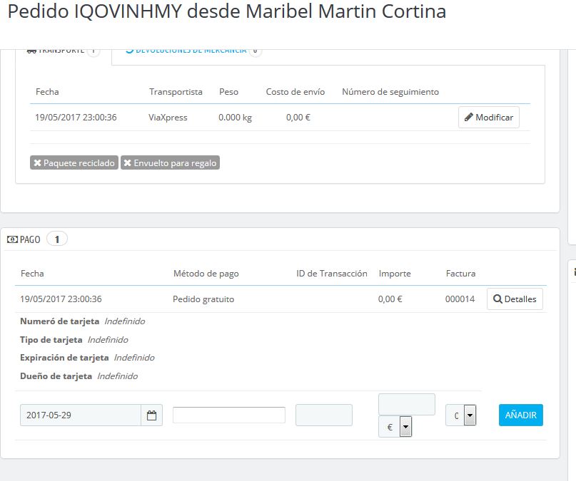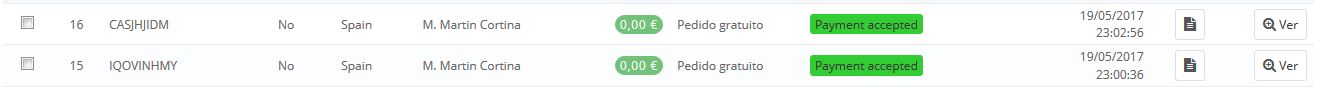 Casadecoronline Posted May 30, 2017 Share Posted May 30, 2017 Hola, he tenido un problema con dos pedidos que no acierto a resolver. Los artículos fueron creados como el resto de mis otros 200 ariículos, con su precio correspondiente. Cuando entro a Clientes-Carros de compra, se aprecia como el carro tiene los artículos con su precio asignado, hasta ahi todo normal. Pero cuando voy a Pedidos, esos dos carros pasaron a ser "pedidos gratuitos" y no entiendo por qué. He revisado los vales y reglas de descuento y no hay ninguno para mi cliente en cuestión ni para grupos que convierta ningun pedido en gratuito. Por más que revise todo, parece estar en orden, y si hago un nuevo pedido con estos productos en cuestión no se me convierte en ningún momento en pedido gratuito. ¿Alguna sugerencia de lo que puede haber pasado ? Mi cliente me reclama sus artículos pese a que no haya pagado nada por ellos, dice que tiene la factura y que tomará las medidas pertinentes si no se lo envío, no entra en razón. Doy por perdidos estos artículos pero no quiero tener este problema otra vez en el futuro. Adjunto imágenes del tema en cuestión. Muchas gracias. Link to comment Share on other sites More sharing options...
