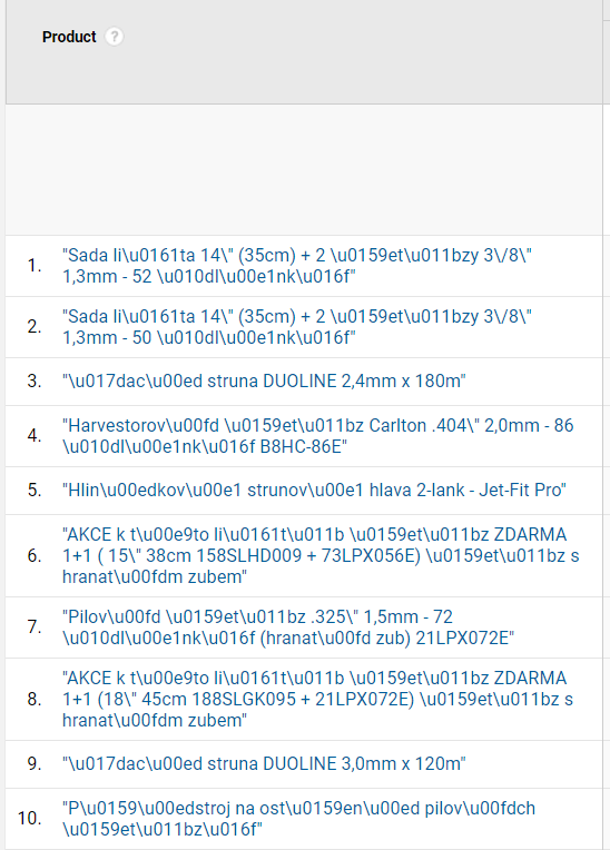 SmoothNCool Posted June 2, 2017 Share Posted June 2, 2017 (edited) Zdravím, klientův eshop běží PS 1.6.0.14 a používá oficiální GA modul. Máme ale problém s diakritikou u názvů produktů přímo v GA (GA - Ecommerce - product performance). Například "é" se zobrazuje jako "\u00e9", "š" jako "\u0161". Nějaké tipy? Díky Edited June 2, 2017 by SmoothNCool (see edit history) Link to comment Share on other sites More sharing options...