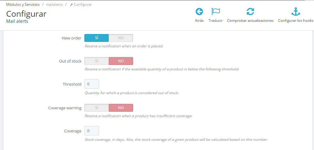 default-bootstrap Posted June 3, 2017 Author Share Posted June 3, 2017 (edited) Me autorespondo: Ya he encontrado cómo desactivar los mails de out of stock. La opción está en el módulo mail alerts. Dejo captura de pantalla Edited June 3, 2017 by default-bootstrap (see edit history) Link to comment Share on other sites More sharing options...