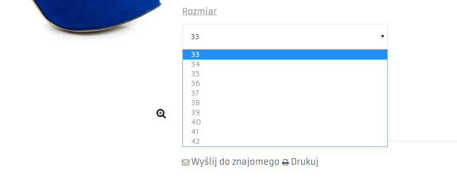 Chodzi mi o to aby dostępne rozmiary (sklep z obuwiem) przy produkcie w rozwijanej liście wyświetlały się na czarno, pogrubionie, a niedostępne na szaro bez pogrubienia. Czyli ogólnie żeby dało się rozróżnić te, które są na stanie od tych, których nie ma, ale bez wyłączania ich. Teraz jest tak: