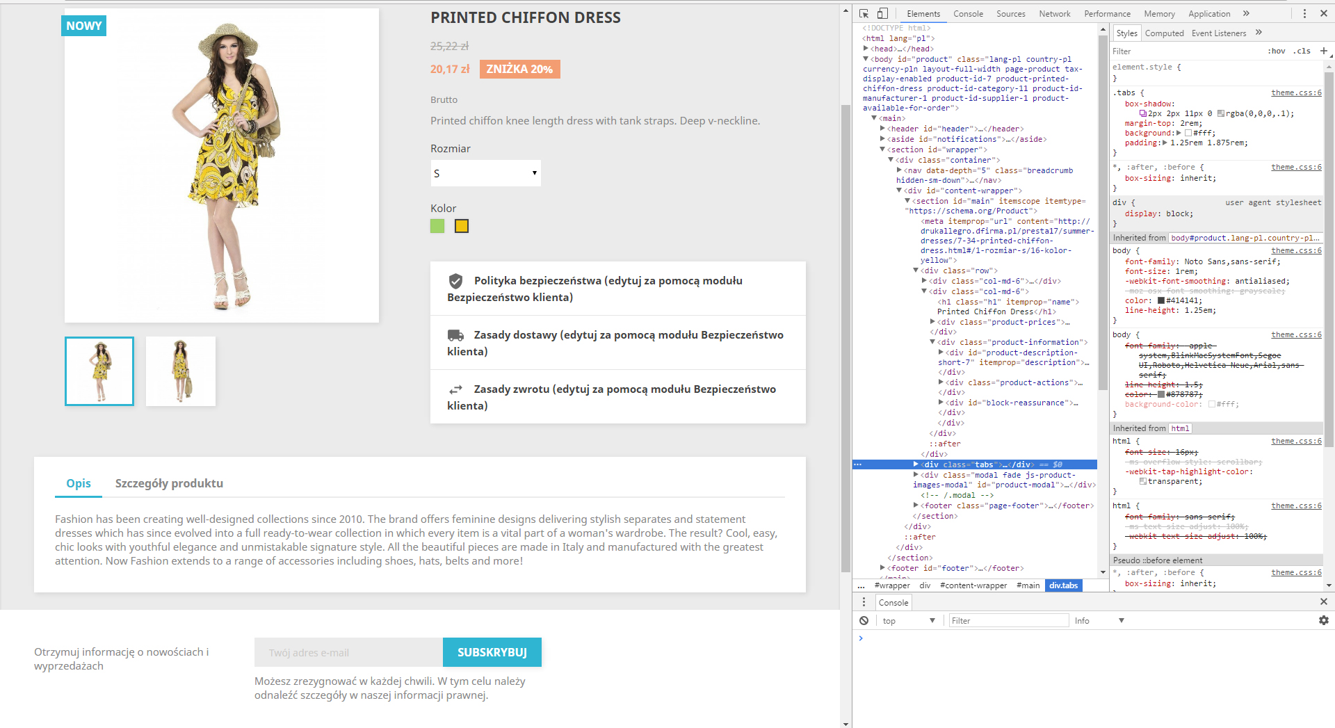 Searlas10 Posted June 6, 2017 Share Posted June 6, 2017 Witam. Chciałbym przesunąć div "tabs" tak aby znajdował się on na całej szerokości głównego "pojemnika", tak jak na załączonym zrzucie ekranu. Które pliki muszę edytować? Czy może to negatywnie wpłynąć na funkcjonowanie sklepu? Proszę o pomoc. Wersja presty: 1.7.1.1 Szablon:classic Link to comment Share on other sites More sharing options...