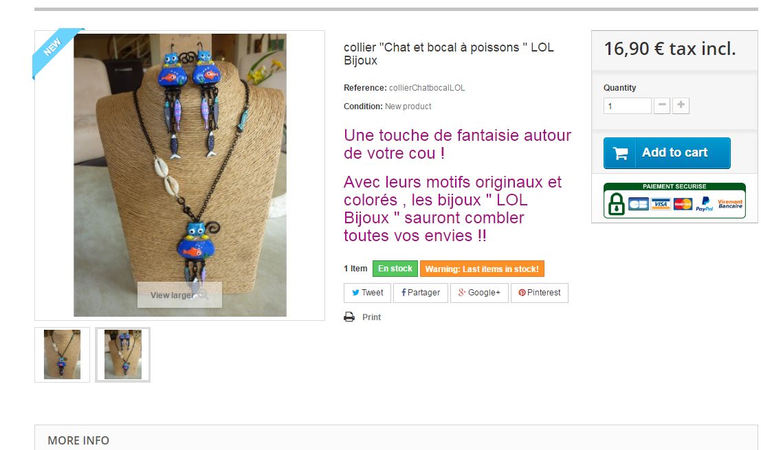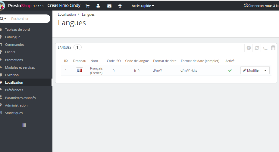 Créas Fimo Cindy Posted June 7, 2017 Share Posted June 7, 2017 Bonjour , j'ai installé prestashop 1.6.13 , il est tout en français ( le support administrateur ) sauf dans ma boutique en ligne , quelques phrases comme " add to car" , " more" , "quick view" , ainsi que le panier dans " localisation " " langues" , j'ai bien le français d'activé est ce que je dois faire toute la traduction moi même dans l'onglet " traduction" ? Merci Link to comment Share on other sites More sharing options...