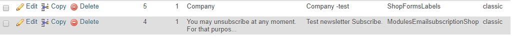 mnick Posted June 8, 2017 Share Posted June 8, 2017 In PS 1.7 some label field from registration section cannot be changed in classic theme -Changes are saved in BO -international-translation -Changes are saved in data base ps-translation -Changes are not show in live The fiels I discovered are: 1. Subscribe to newsletter (registration form) 2. Company (address form) 3. Other (extra field in address form) See pictures Link to comment Share on other sites More sharing options...
