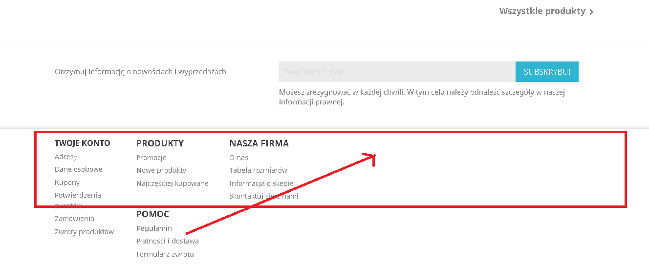 Problem z blokiem informacyjnym w stopce