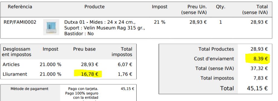 agumana Posted June 8, 2017 Share Posted June 8, 2017 Buenas tardes, Estoy persdonalizando un poco el pdf de la factura en PS.1.6.1.12 y al añadir Alguna idea? También pego código del TPL modificado <td class="center white"> {$line.rate} % </td> <td class="right white"> {if isset($is_order_slip) && $is_order_slip}- {/if} {displayPrice currency=$order->id_currency price=$line.total_tax_excl} ------ esta es la línea que da el problema </td> <td class="right white"> {if isset($is_order_slip) && $is_order_slip}- {/if} {displayPrice currency=$order->id_currency price=$line.total_amount} </td> Gracias Link to comment Share on other sites More sharing options...