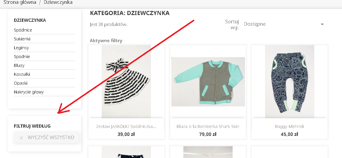 0 ufiartist Posted June 12, 2017 Share Posted June 12, 2017 W wersji 1.7 moduł nazywa się "Nawigacja fasetowa" (w menu wchodzisz w moduły->zainstalowane moduły - tam w sekcji moduły szablonu znajdziesz nawigacja fasetowa)Przy konfiguracji tego modułu masz szablony filtrów - edytując je wybierasz jakie cechy i gdzie dane filtry mają występować. Wystarczy, że wybierzesz wszystkie kategorię i powinno zadziałać. Link to comment Share on other sites More sharing options...