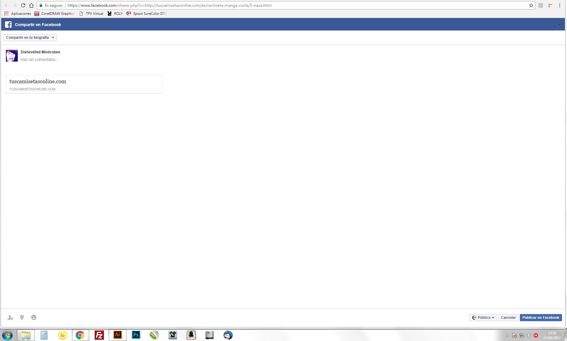 Dishevelled Posted June 12, 2017 Share Posted June 12, 2017 Buenos días a todos, tengo un problema con el módulos de botones para compartir enlaces de productos en redes sociales. Hace poco que he creado la página, y me he dado cuenta de que cuando le doy a compartir a un artículo, por ejemplo en Facebook, el enlace que me crea no tiene ni la descripción ni imágenes, solo pone la página web. adjunto captura de pantalla.¿Alguien sabe como hacer para que coja tanto la descripción como la imagen del producto a compartir? Gracias de antemano. 1 Link to comment Share on other sites More sharing options...