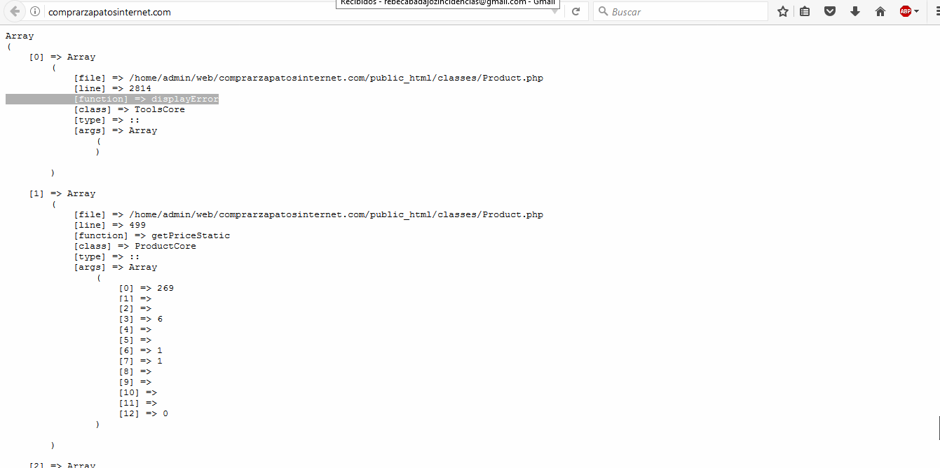 vvirginiaa Posted June 13, 2017 Share Posted June 13, 2017 Buenas tardes, me encuentro con el siguiente problema en la web de mi cliente: Al entrar en la web aparece el error Fatal error sin ninguna información adicional, he borrado cache manualmente, no da aparentemente ningún error en el servidor ni en el registro de errores. Lo único que me aparece al poner prestashop en modo debug es un array con los productos y ya no me aparece el fatal error. Este error ami no se me genera, solo aparece de vez en cuando al entrar en la web o al identificarse o al comprar al ser así no soy capaz de arreglarlo con tanta facilidad y por ello me encuentro aquí a ver si podéis ayudarme. El dominio es comprarzapatosinternet.com si necesitáis alguna información para ayudarme estaré por aquí. adjunto archivos tanto del error como del array. Un saludo. Muchas gracias. Link to comment Share on other sites More sharing options...
