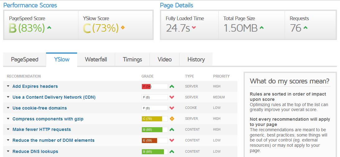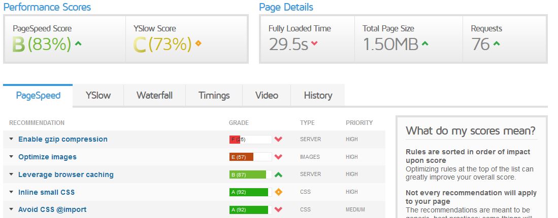 Maaike Posted June 16, 2017 Author Share Posted June 16, 2017 Hey Maaike, It looks like you are still having perfomance issues. have you checked this one : force compilation turned off and cache turned on het ziet er toch echt naar uit dat het een issue is met de server waar je site op draait. Zoek even een prestashop specialst voor een snelle second opinion. Groet, Dennis Hello Dennis, I changed that. Wil give that a try for today and the weekend. No orders coming in so its save to try practically anything. On suggestion of the host I did a test with gtmetrix. Mailed the results back to them, no answer yet. But maybe someone her can make sense out of it. Link to comment Share on other sites More sharing options...