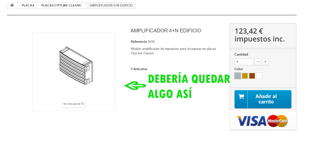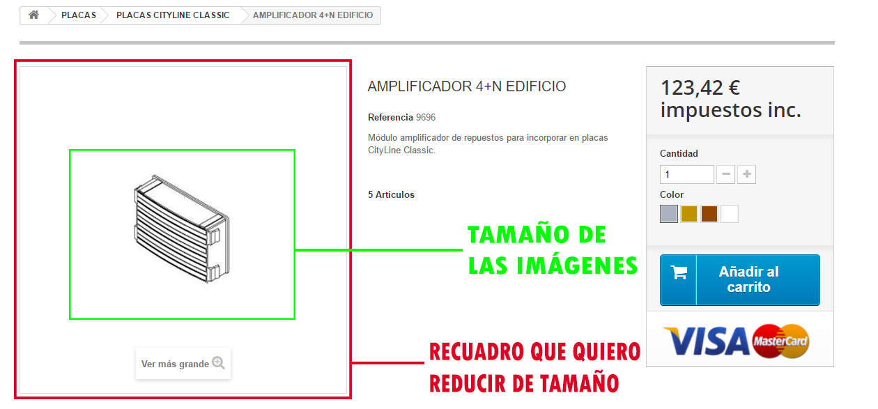 mgrau Posted June 14, 2017 Share Posted June 14, 2017 Buenas, estoy montando una tienda online b2b de recambios de telecomunicaciones. Es la segunda tienda que monto y la primera que hago con prestashop así que voy un poco perdido. La cuestión es, que trabajo con unas imágenes de producto de baja calidad, que me han proporcionado los propios fabricantes. El problema, es que las imágenes en el tamaño correspondiente al cuadro de la ficha de producto, se pixelan así que decidí reducir su tamaño para que se vieran en condiciones. Pero ahora me queda un recuadro mas grande que el tamaño de todas mis imágenes y la verdad, queda bastante feo. Existe alguna posibilidad de reducir el tamaño del recuadro (mirar fotografía) al de mis imágenes? (código html o css) Link to comment Share on other sites More sharing options...