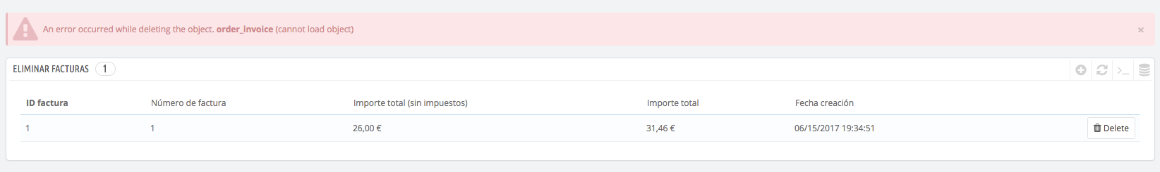 Vanlombardi Posted June 15, 2017 Share Posted June 15, 2017 Hello guys,I just made a simple module for my customer so he can delete invoices without accessing database.The plugin shows a table with all invoices and the main concept is to remove the db entry when "Delete" action is cliked. But the following error pops up:"An error occurred while deleting the object. order_invoice (cannot load object)" Do i have to define the delete action logic somewhere? Thought those default actions were already defined. I'm having trouble to find documentation aside from the basic module set up from prestashop docs.Thank you! Link to comment Share on other sites More sharing options...
