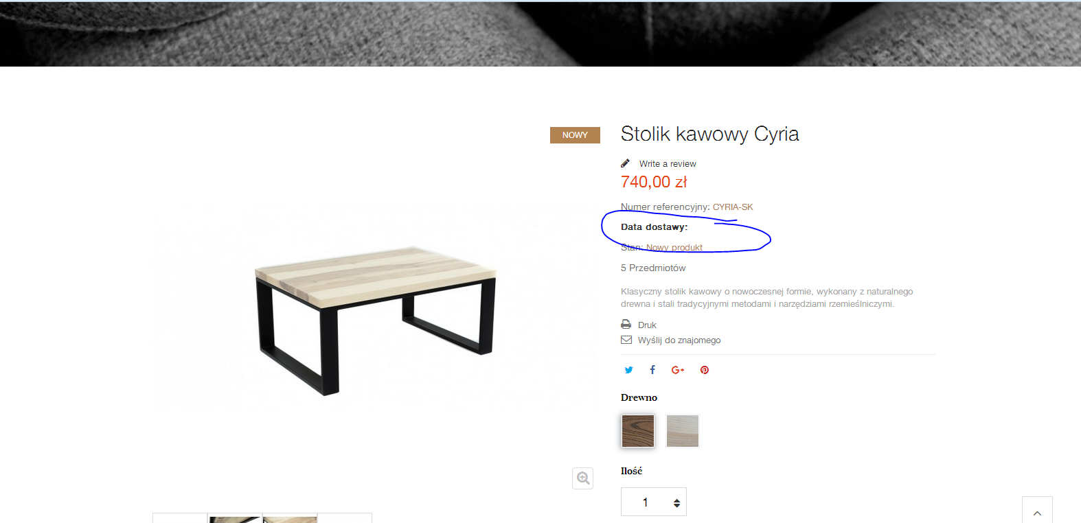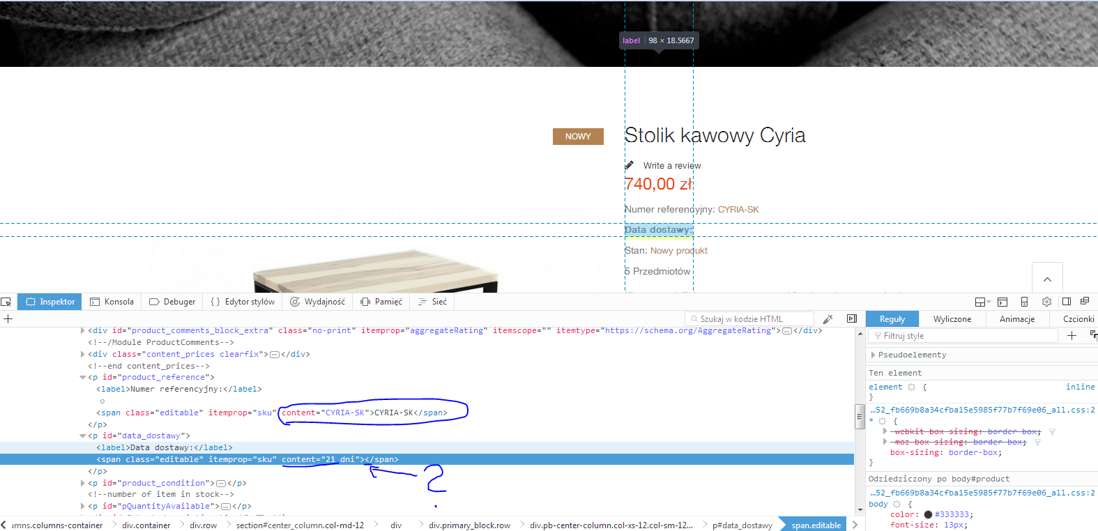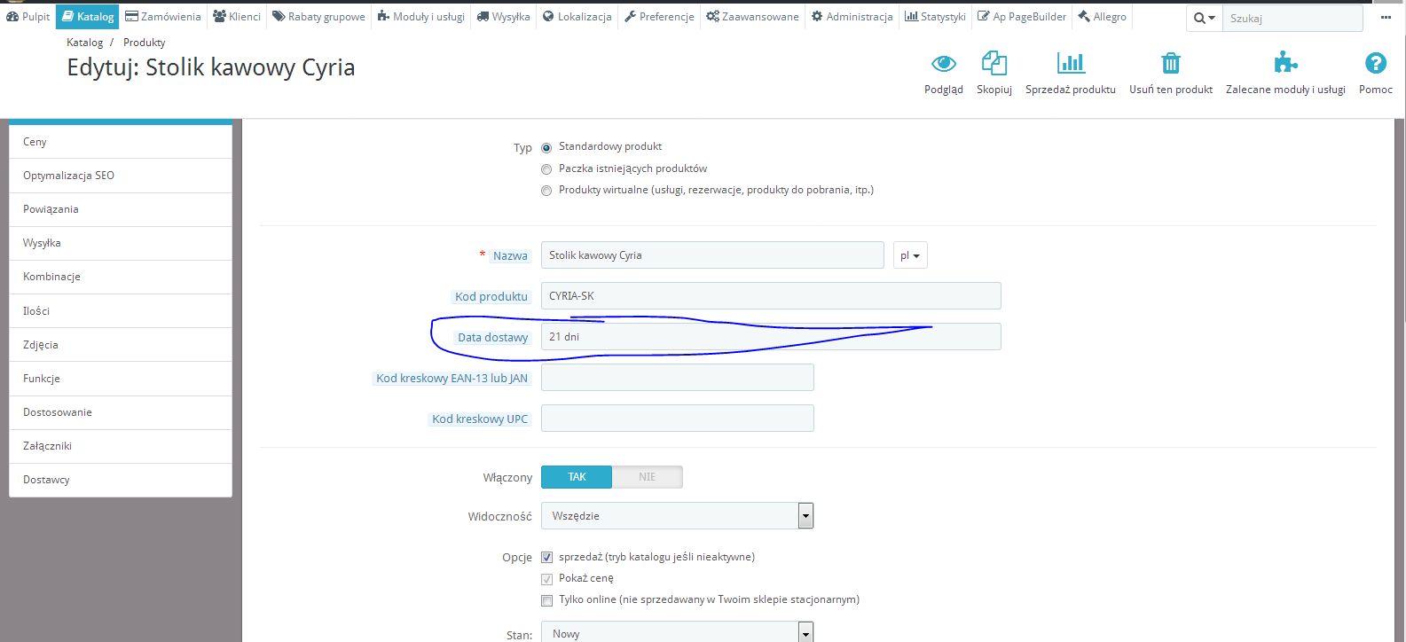 Stworzyłem nowe pole do panelu produktu dla swojego sklepu internetowego.