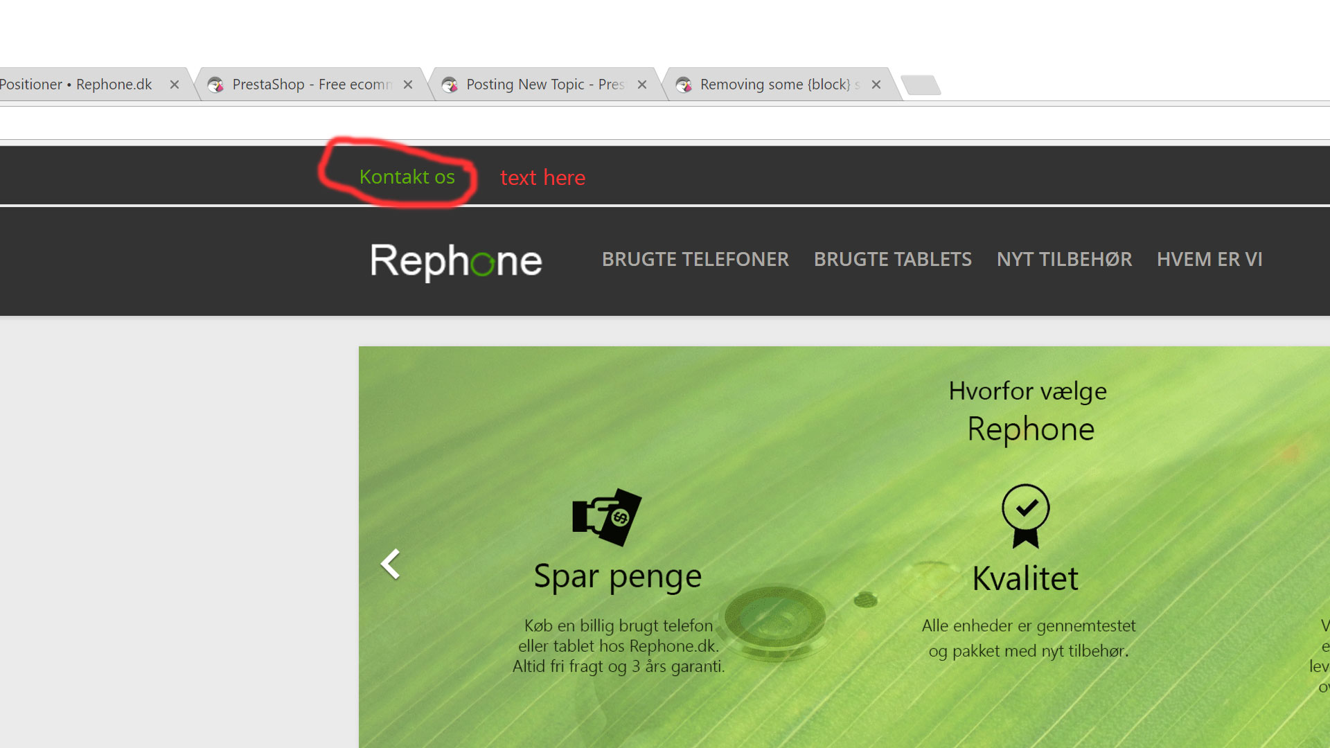 Bringzter Posted June 17, 2017 Share Posted June 17, 2017 Hi, i am new to prestashop, and i've startet a website using the standard theme. i got problems with adding text to the header ("displaynav1") beside the "contact us" link. Can anybody help me with this. I've attached a screenshot Thanks! Link to comment Share on other sites More sharing options...