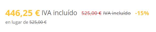 Muestra Precio final (ok), Precio anterior al descuento (ok), % descuento (ok) pero también otra vez el precio antiguo con el texto "en lugar de".