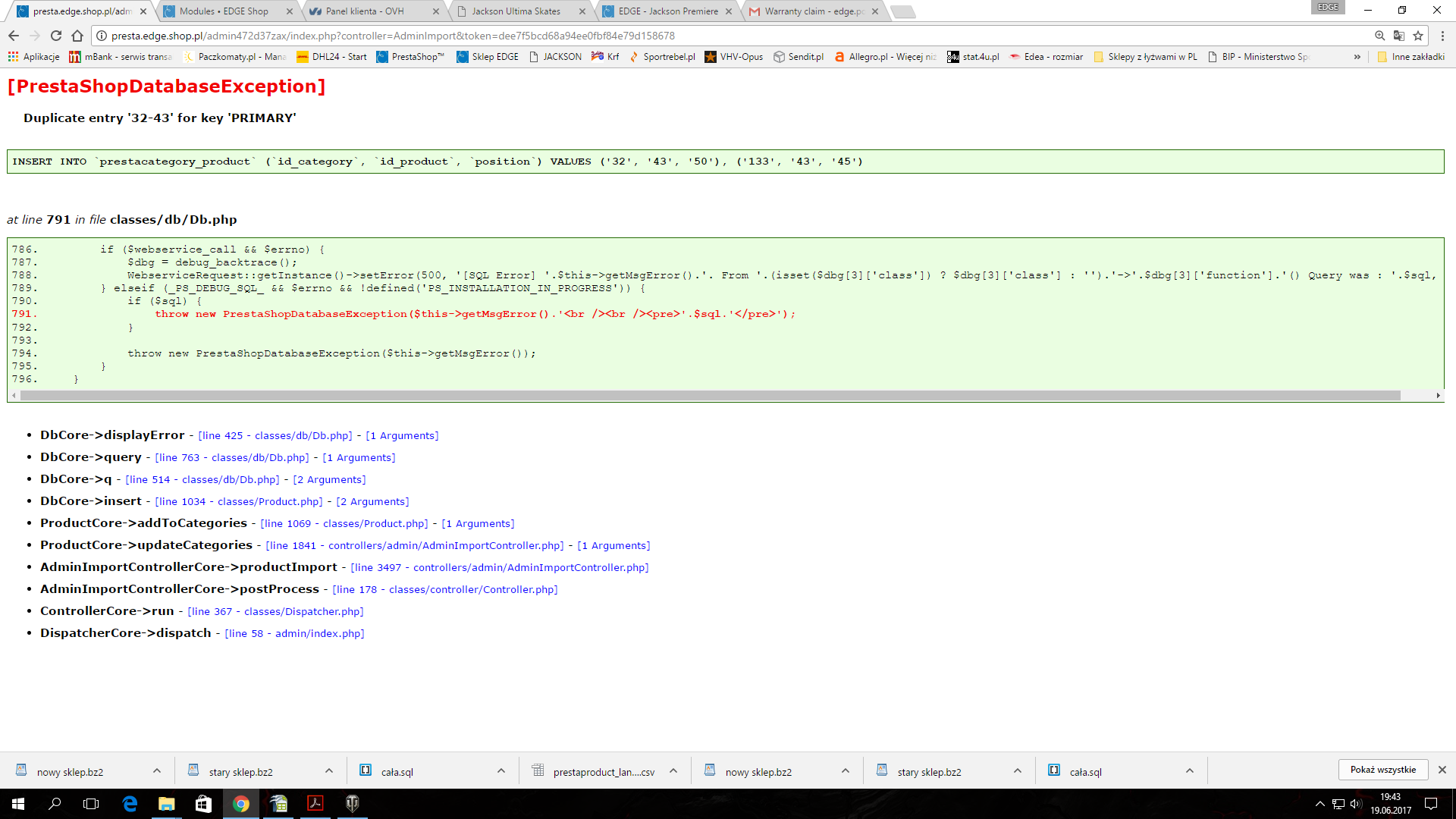 mr.dipi Posted June 19, 2017 Share Posted June 19, 2017 (edited) Mam problem z importem tagów z CSV W pliku csv mam dwie kolumny - ID products i Tags Wgrywam tabelę przez import zaznaczając na tak: Usunąć wszystkie produkty przed importem NIE Użyć indeksu produktu jako klucza TAK Pomiń ponowne generowanie miniatur TAK Wymuś wszystkie numery ID TAK w następnym oknie wybieram co ma importowac - do jakich kolumn (id product do id product potem tags do tags ) niestety operacja nie kończy się pomyślnie - otrzymuję komunikat jak w załączniku. na dodatek dzieją się dziwne rzeczy - zmieniają się nazwy / opisy towarów (to na szczęście udało się odratować z kopii zapasowej) Jakieś pomysły? Edited June 19, 2017 by mr.dipi (see edit history) Link to comment Share on other sites More sharing options...