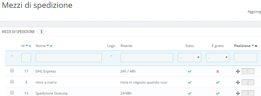 robertone63 Posted June 20, 2017 Share Posted June 20, 2017 Per fare la promo "spedizione gratis" su alcuni prodotti ho creato un terzo corriere con spedizione a costo zero, dopo il corriere standard e il "ritiro a mano", vedi allegato. Il problema è che adesso devo sempre specificare le scelte di spedizione ogni volta che inserisco un nuovo prodotto perché altrimenti mi da di default tutte e tre le possibilità. Esistono altri modi per offrire questa spedizione solo su ceti articoli o solo per certi periodi? Grazie Link to comment Share on other sites More sharing options...
