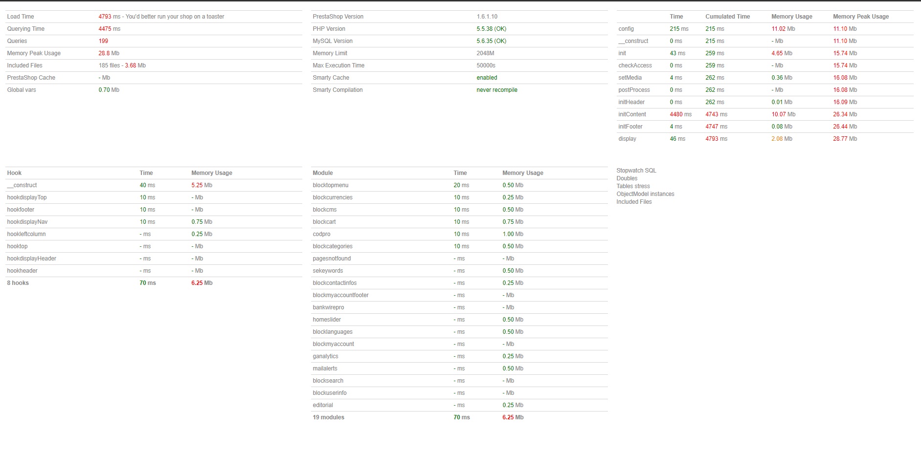 giuliopowa Posted June 23, 2017 Author Share Posted June 23, 2017 Now I have upgrade PS from 1.6.1.10 to 1.6.1.14 upgrade also php from 5.5.38 to 5.6.30But the site go slow slowfor example here : https://www.oriente-import.it/en/35-trousers-cotton-and-elastaneBut the staff of A2 hosting write me this:"Unfortunately, I think the culprit here lies within your PrestaShop configuration along with the pretty voluminous database that it's using. I have tried various of methods to apply some of the latest server features, like upgraded PHP environment, Lite-Speed tweaks in addition to speed up the script execution, upgrade to your MySQL server, but the website didn't provide any indications of improving the overall performance. Mine advice here will be to contact an expert in PrestaShop development and request an overall investigation of your website performance, which could further provide you with any pieces of evidence of what could be improved here. " Link to comment Share on other sites More sharing options...