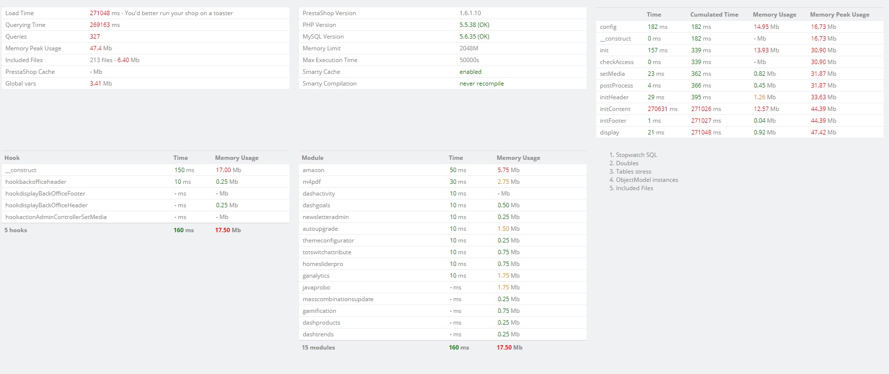 giuliopowa Posted June 21, 2017 Share Posted June 21, 2017 (edited) Hi All,Yesterday I updated my site from 1.5.6.2 to 1.6.1.10 and after this update the site has gone slow.my server is a VPS Power+ by A2 HostingDisk - 75 GBMemory - 4 GBphp version 5.5.38Mysql version 5.6.35Is a multishop whit 3 shop and have 8800 product, 400 categoryIn Attached ( img1 , img2) there are photos with errors of page AdminProduct in BO.In Attached ( img11, img12) there are photos with errors of page Product List in FO.Thanks ! Edited June 21, 2017 by giuliopowa (see edit history) Link to comment Share on other sites More sharing options...