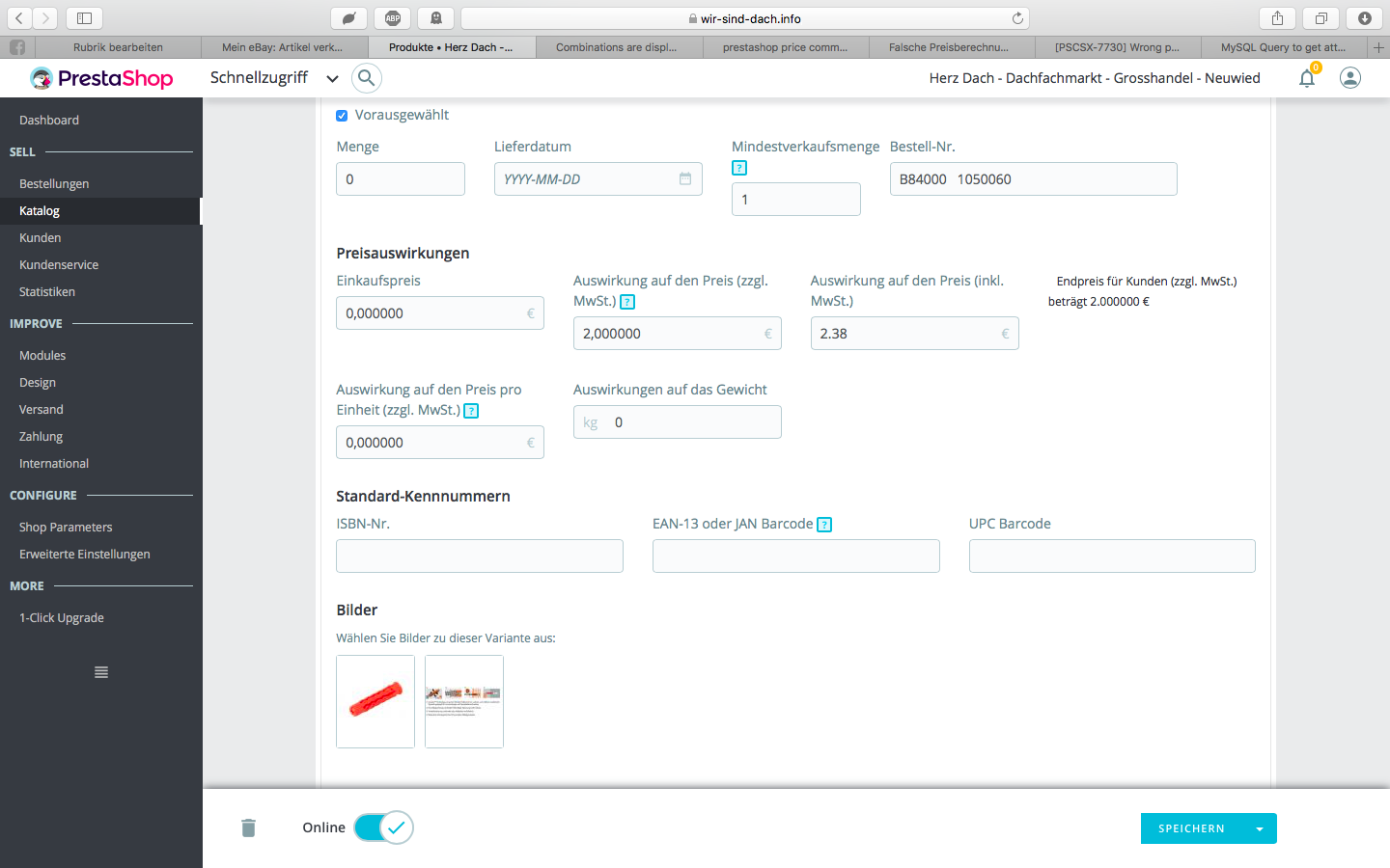 Logge ich mich nun aus und wieder ein erscheint der Preis in diesem Feld plötzlich mit Komma (2,250000€) während der Nettopreis weiterhin mit Punkt dargestellt wird. Hier kommt der Shop schon durcheinander und zeigt im im Frontend einen Preis von 2,38€ statt 2,68€ an.