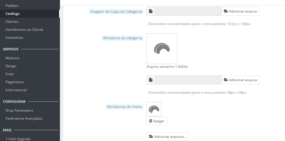Daniel - PrestaBR Posted June 28, 2017 Share Posted June 28, 2017 Subcategorias são categorias iguais às outras. Na opção Catálogo > Categorias, escolha cada categoria e adicione uma imagem para elas. Link to comment Share on other sites More sharing options...