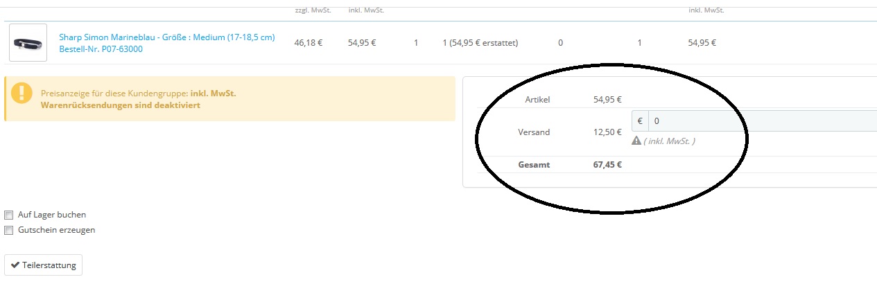 Hallo. Sofern ein Kunde die vollständige Ware zurücksendet, erstatte ich auch die Versandkosten, welche ich für den Versand nach Bestellung vereinnahmt habe. Ich gehe auch davon aus, dass dies so sein muss. Auf der Rückerstattung bzw. auf der Rechnungskorrektur steht jedoch nur der Produktpreis...aber nicht die damaligen Versandkosten als Erstattung. Kann ich dies irgendwo einstellen? Hab leider im Forum nichts gefunden. Danke