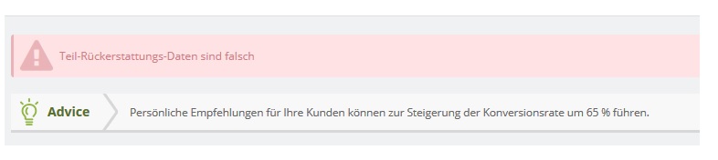 Übrigens nochmals getestet mit einem anderen Auftrag, bekommen wir die genau gleiche Fehlermeldung wie vom Kollegen oben in Post #7 hochgeladen: "Teil-Rückerstattungs-Daten sind falsch". Auf 1500 einfach mal 500 rückerstatten wollen. Woran es scheiterte und weshalb genau, müssten wir wohl nochmals genau untersuchen.