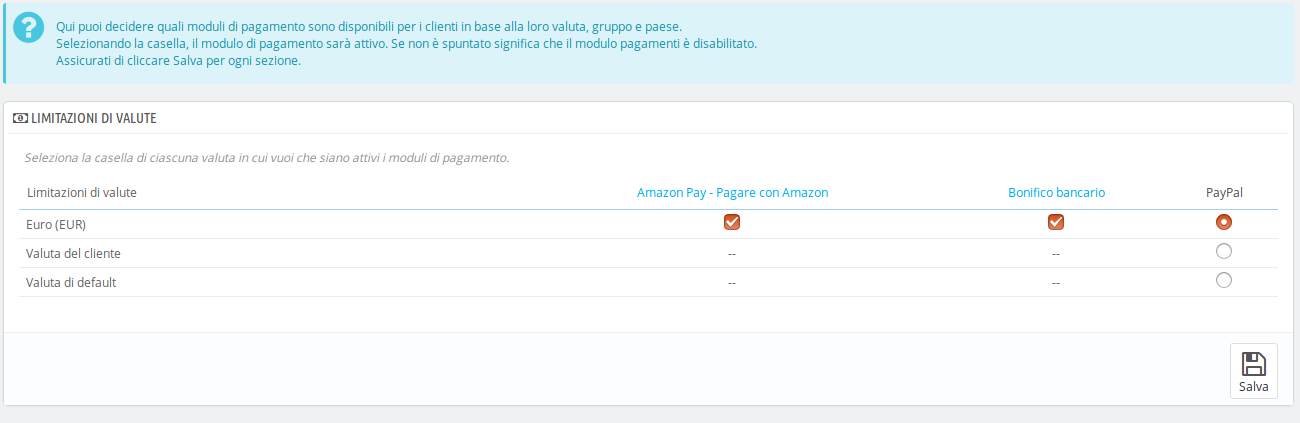 fibo Posted July 4, 2017 Share Posted July 4, 2017 (edited) Salve, stavo facendo delle prove con Prestashop 1.6.1.14. Nella pagina del checkout ho perso il link ai pagamenti con Paypal.Nel BO, però, il modulo PayPal risulta agganciato sia all'hook displayPayment che a displayPaymentUE. Qualche idea su cosa possa controllare? Grazie Edited July 6, 2017 by fibo (see edit history) Link to comment Share on other sites More sharing options...