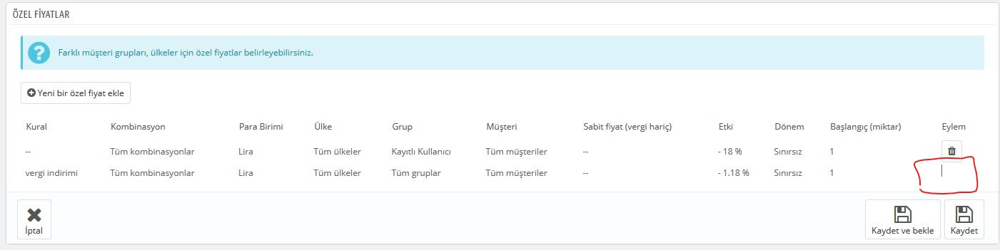 bera_ramazan Posted July 8, 2017 Share Posted July 8, 2017 biraz uzmanlık ister bu diyeceğim veritabanına bağlananın şu tabloyu bulun "ps_specific_price" tablosunda bu eklediğiniz indirimi silin 1 Link to comment Share on other sites More sharing options...