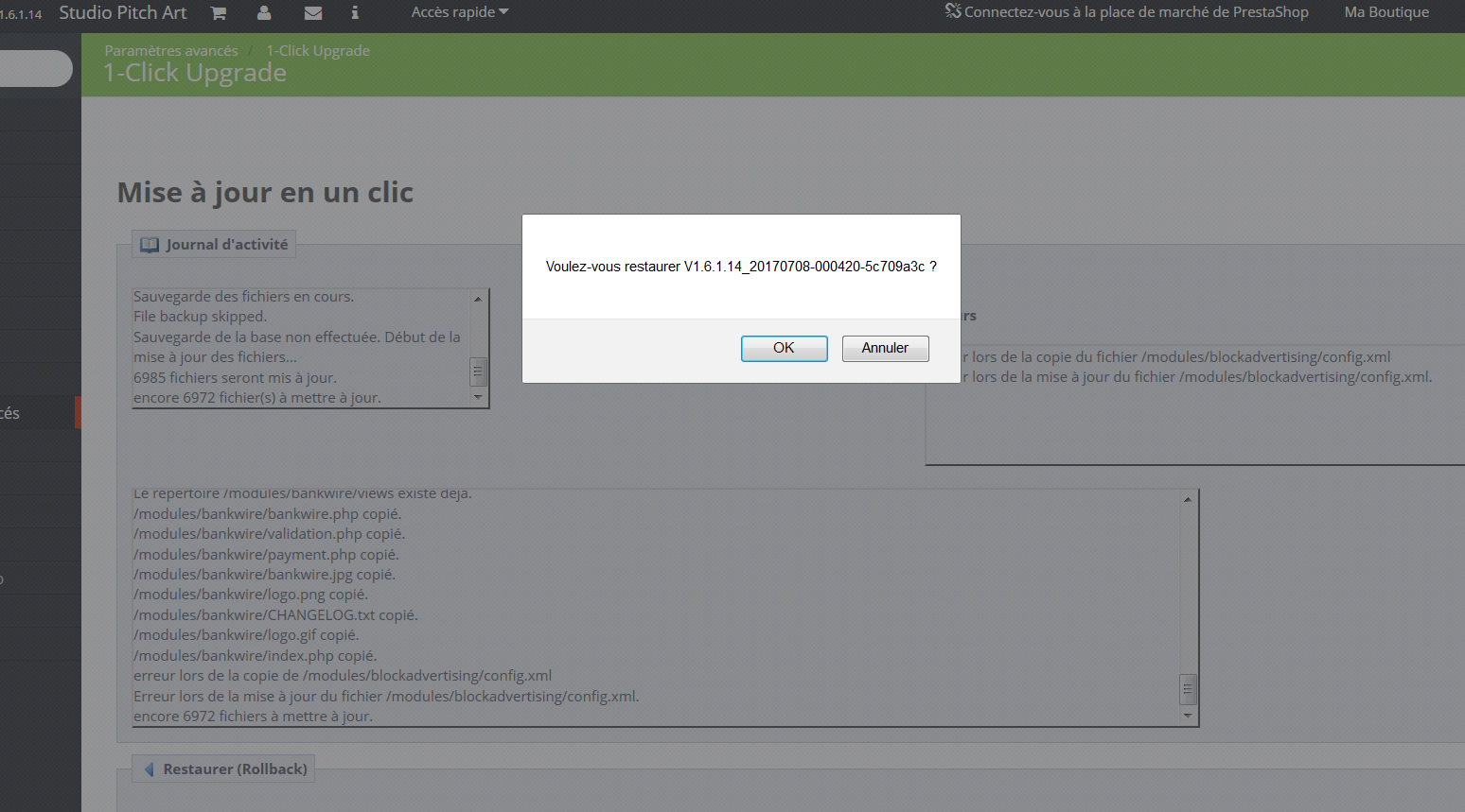 [Résolu] Click Upgrade bug pour passer de 1.6.1.14 a 1.6.1.15