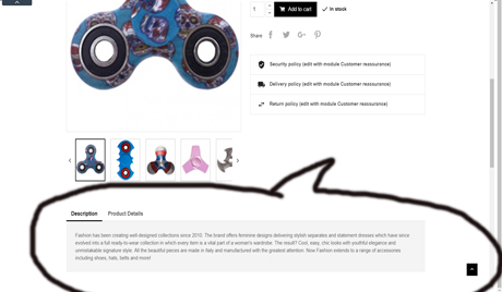 juan soria Posted July 9, 2017 Share Posted July 9, 2017 (edited) Quiero ampliar como el archivo adjunto .. un tratado de modificar y no me venta .. como respuesta para movil y tableta. Necesito ayuda para la modificación como ampliar la descripción y los detalles de los productos y que el mar responde El problema que tengo es en prestashop 1.7.. que viene en una columna chica al lado derecha . quiero que se ampliado en toda la pagina. Edited July 9, 2017 by juan soria (see edit history) Link to comment Share on other sites More sharing options...