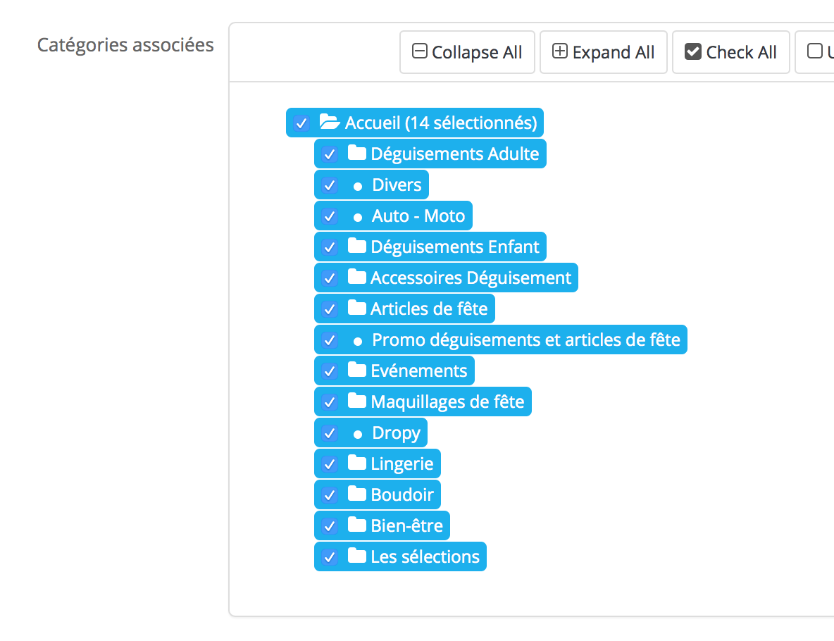 cwms Posted July 14, 2017 Share Posted July 14, 2017 Bonjour, On a installé Prestashop 1.7.2 (en mode multiboutique) avec une catégorie racine (accueil) et un seul groupe de boutique (défaut) et des catégories associées de produits. L'idée étant d'avoir plusieurs sites ecommerces indépendants + un seul site "mère" ayant tous les produits. On a donc ajouté dans un seul groupe multi-boutique tous les sites internet. Si, je vais dans les paramètres d'une boutique et que je sélectionne les catégories associées pour une des boutiques, tout se passe bien. Au moment où je retourne dedans, il m'affiche dans un premier temps, les catégories associées préalablement sélectionnées, puis une fois que la page est totalement chargée, la totalité des catégories selectionnées ! (cf les deux captures ci-jointes qui sont prises à quelques secondes d'intervalle et sans action quelconque de ma part). Comment faire pour conserver uniquement les catégories préalablement selectionnées ? Merci, CWMS. Link to comment Share on other sites More sharing options...