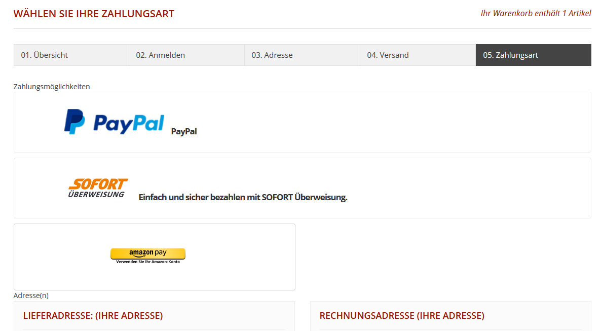 Scully Posted July 20, 2017 Share Posted July 20, 2017 (edited) Ich kenne Sofortüberweisung nicht. Aber es gibt das Modul 'bankwire', welches für normale Bankzahlungen vorgesehen ist. Hinterlegt wird die Kontoverbindung und wenn der Auftrag i.d.R. automatisch auf den Status 'Warten auf Zahlung Bank' geht, dann erhält der Kunde eine zusätzliche Mail mit den Bankkontodaten. Im Normalfall kann man also mehrere Zahlungsmodule nutzen, welche im Detail unterschiedliche Auftrags-Stati und damit ggf. andere Mailvorlagen nutzen. Wenn das zu "kompliziert" ist, dann kann man auch einfach in die Datei order_conf.html und order_conf.txt die Bankverbindungdaten fix reinschreiben. Dann kann der Kunde bei erhalt der Mail selbst überlegen, welchen Zahlungsvorgang er nutzen möchte. Nachteil hier: In der Auftragshistorie ist dann nicht ersichtlich, welchen Zahlungsweg der Auftrag am Ende tatsächlich genommen hat. Edited July 20, 2017 by Scully (see edit history) Link to comment Share on other sites More sharing options...