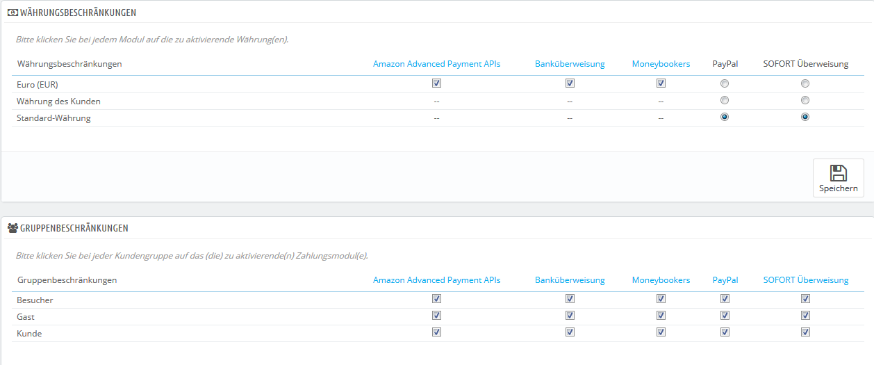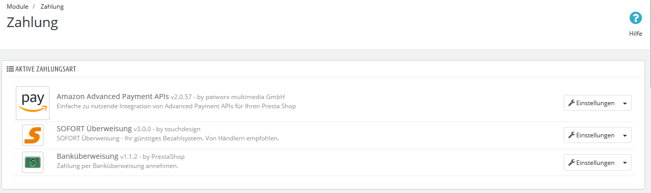 despoberry Posted July 20, 2017 Author Share Posted July 20, 2017 Installiert und aktiv ist das Modul "bankwire". Scheinbar überschreibt da das Modul "Sofortüberweisung" etwas. In den Zahlungsbeschränkungen ist die "bankwire" nicht aufgeführt. Link to comment Share on other sites More sharing options...