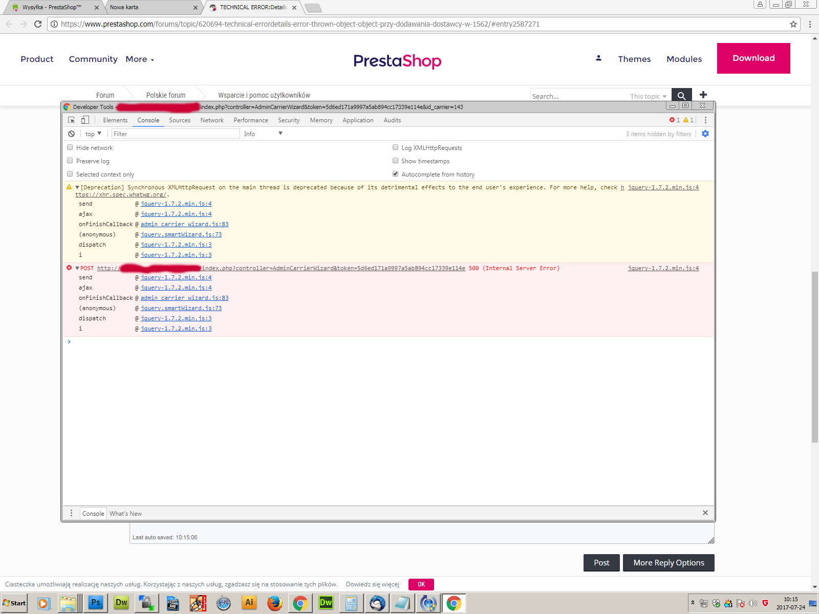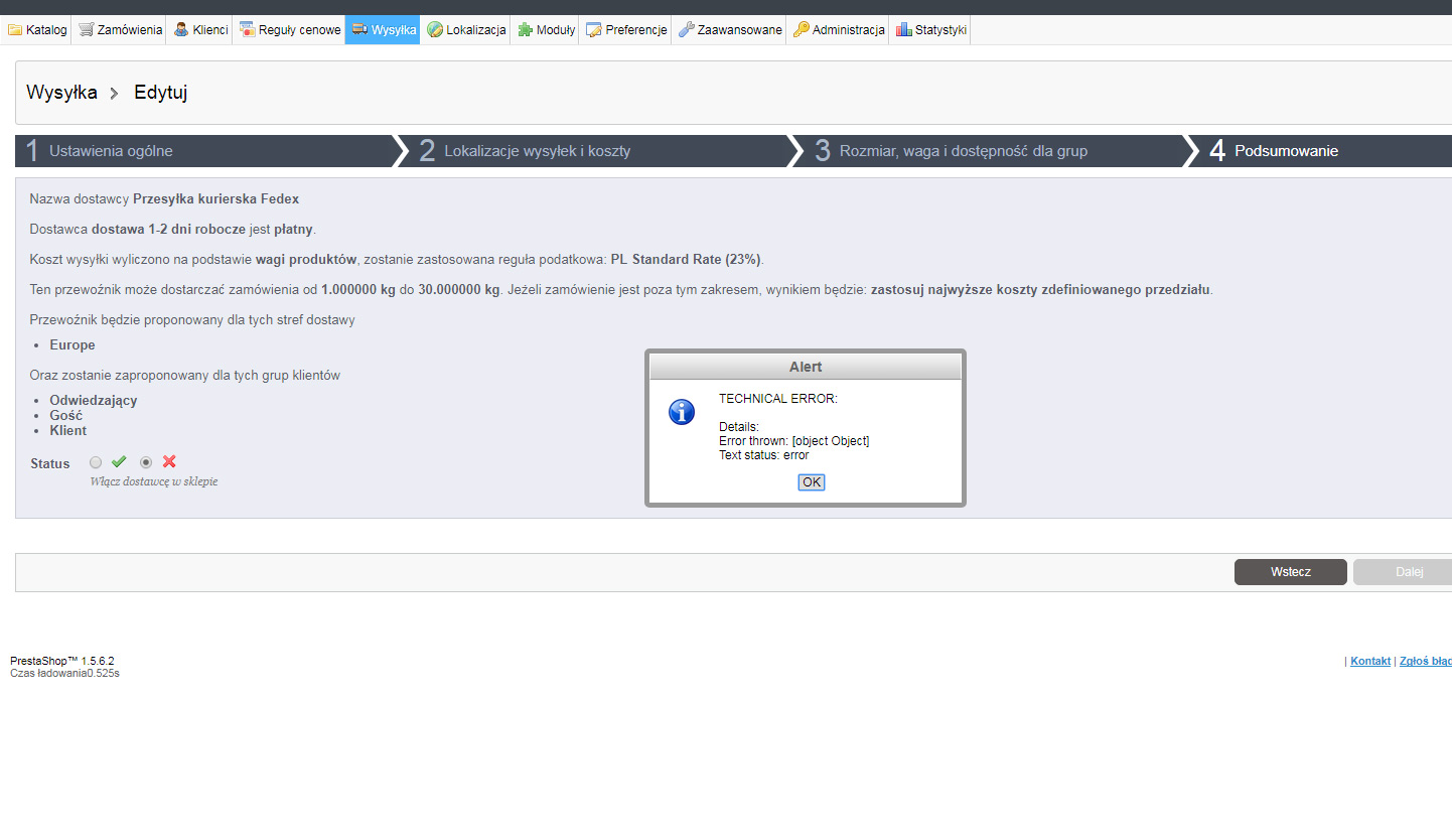 Witam. Mam problem z dodaniem nowego dostawcy w prestashop 1.5.6.2 po naciśnięciu zapisz wyskakuje to co w screenie załącznika: