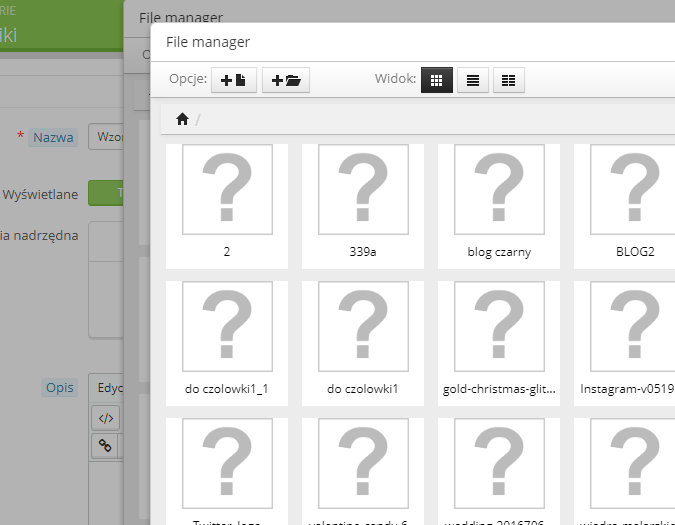 Utworzyłam nową kategorię i wczytuję zdjęcia poprzez wstaw obrazek. Po wczytaniu pojawia się informacja, że przesyłanie zakończylo się sukcesem jednak zdjęcia nie są widoczne tylko ? jak na zdjeciu.
