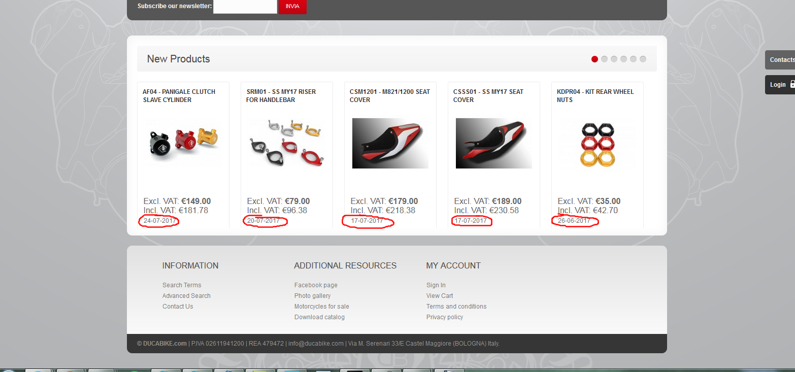 Mirco206 Posted July 26, 2017 Share Posted July 26, 2017 Ciao, avrei bisogno di mostrare nella home page (dove vengono visualizzati i nuovi prodotti) la data di inserimento del prodotto stesso. Praticamente una cosa identica a quella che è stata fatta in questo e-commerce magento (vedi allegato). Si tratterebbe di andare a richiamare dal DB la data in cui il prodotto viene salvato, ma non so come fare. Grazie Link to comment Share on other sites More sharing options...