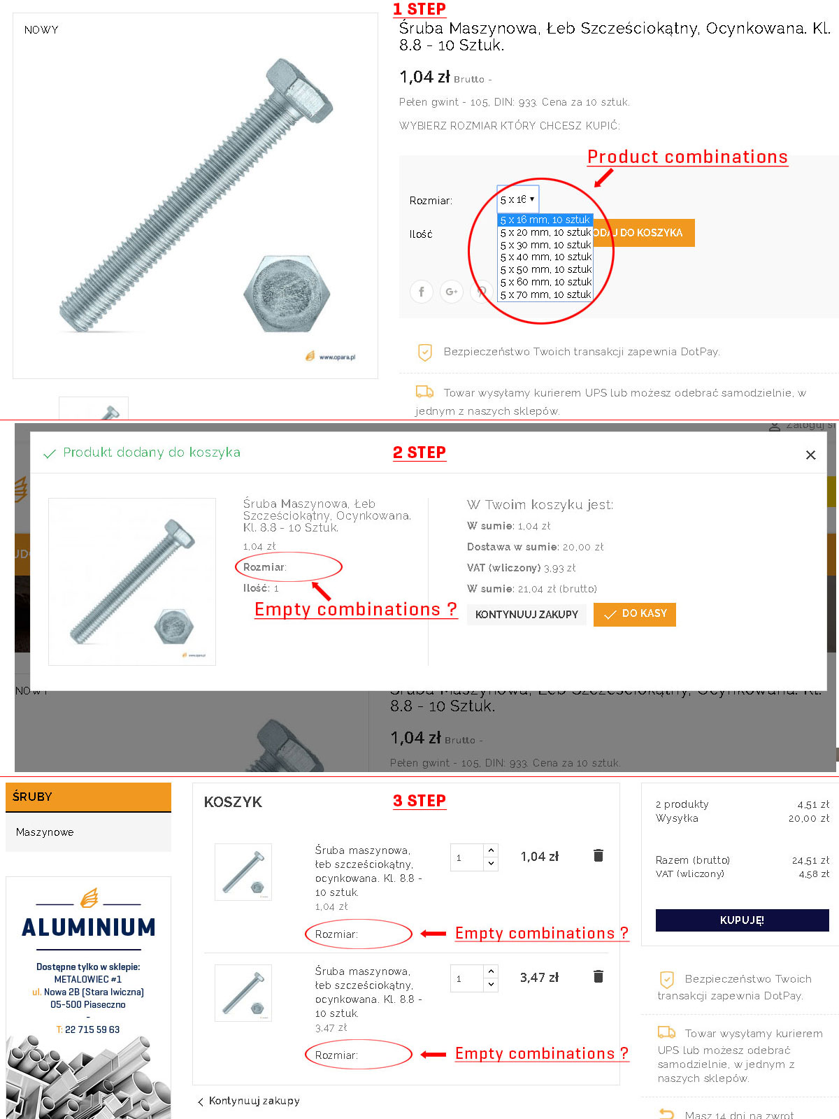 Cadabra Posted July 27, 2017 Share Posted July 27, 2017 (edited) Hej, Mam problem z kombinacjami produktu - koszyk ich nie pokazuje. Czy ktoś wie jak to naprawić? (Presta 1.7) Załączam screena. (Opisy błędów po angielsku - dla autorów szablonu, ale to błąd presty) Edited July 27, 2017 by Cadabra (see edit history) Link to comment Share on other sites More sharing options...