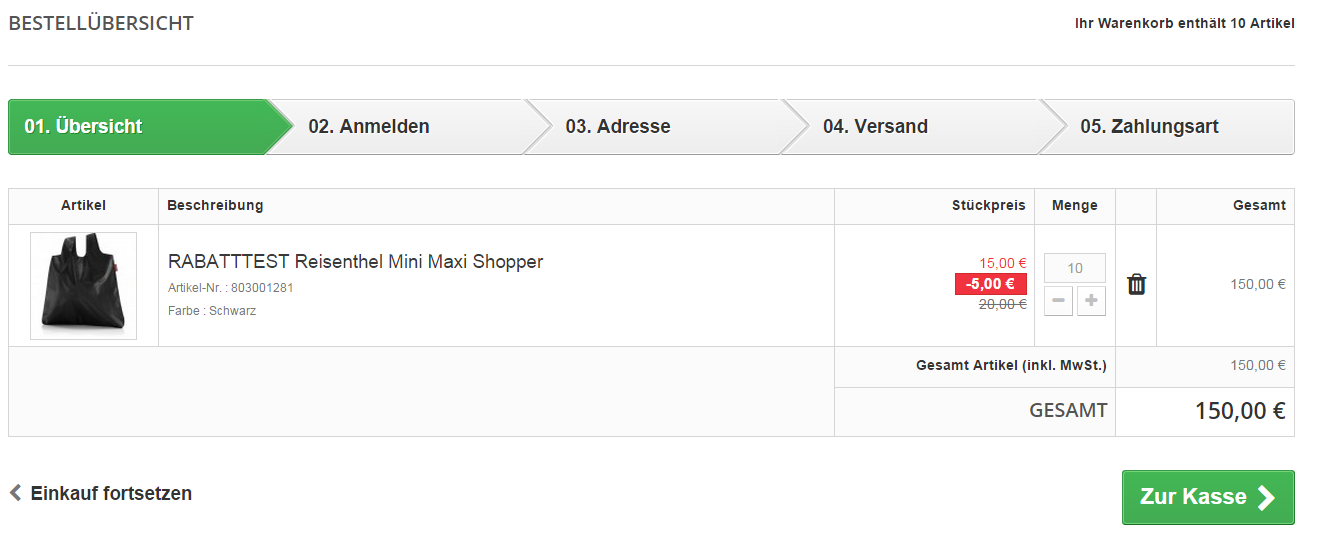 Scully Posted July 31, 2017 Share Posted July 31, 2017 (edited) Gerade mal mit einer PS 1.6.1.15 getestet. Ein Produkt zum Preis von 500, 50 Rabatt für alle ab 1 Stück. 60 Rabatt ab 2 und 70 ab 3 Stück. Funktioniert hier bestens. Preisanzeige ist korrekt. Und im Warenkorb wird auch richtig gerechnet bei Erhöhung der Mengen. P.S. auch nochmal getestetet mit nur EINEM Mengenrabatt ab 10 Stück. Auch da läuft es ohne Probs. Edited July 31, 2017 by Scully (see edit history) Link to comment Share on other sites More sharing options...