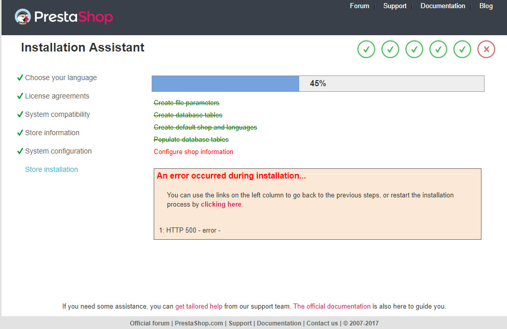 ptrbrn Posted August 21, 2017 Author Share Posted August 21, 2017 Ciao a tutti, oggi ho riprovato ad installare prestashop 1.7.2 in locale utilizzando WAMP ma si blocca quando arriva a "installazione del negozio". Mi compare l'errore > 1: HTTP 500 - error - Ma è così difficile installare la nuova versione in locale ? Link to comment Share on other sites More sharing options...