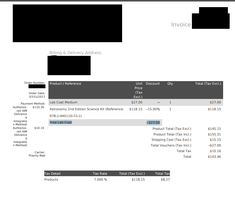 jscroggs Posted August 3, 2017 Author Share Posted August 3, 2017 In digger a bit deeper on this, is PrestaShop able to actually handle sales tax? Here is an invoice that I couldn't be more confused over. Does anyone know if they have fixed these bugs in the recent updates? Are others having these bugs, and like us, haven't dug into the numbers deep enough to notice them yet? Neither of the actual charges on the left correspond to ANYTHING on the right hand side of the screen. 1) Does anyone know why there are 2 different sales tax numbers listed on the invoice? 2) Does anyone know why it is attempting 2 separate transactions for payments? I'm pretty sure we "would" be getting charged doubly from Authorize.Net, "if" the charge for sales tax were actually going through. 3) Has anyone else had a similar experience to this? I greatly appreciate any feedback. Link to comment Share on other sites More sharing options...