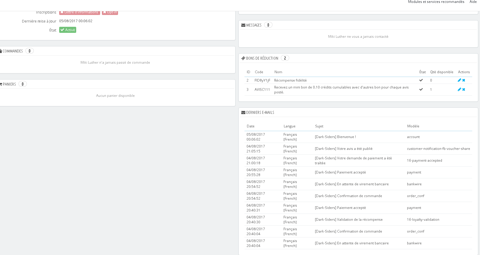 D-S Posted August 4, 2017 Share Posted August 4, 2017 (edited) Bonjour à tous, je suis sur prestashop 1.6, après quelques test j'ai reset mes modules, et effacer toutes les commandes et client via le cleaner, le problème c'est quand je recréer le 1er compte, tout est reset sauf les bons de réductions et tout les email qui ont été envoyé, je pense que c'est par rapport à l'id, comment effacé tout cela svp?Merci beaucoup. Edited August 4, 2017 by D-S (see edit history) Link to comment Share on other sites More sharing options...