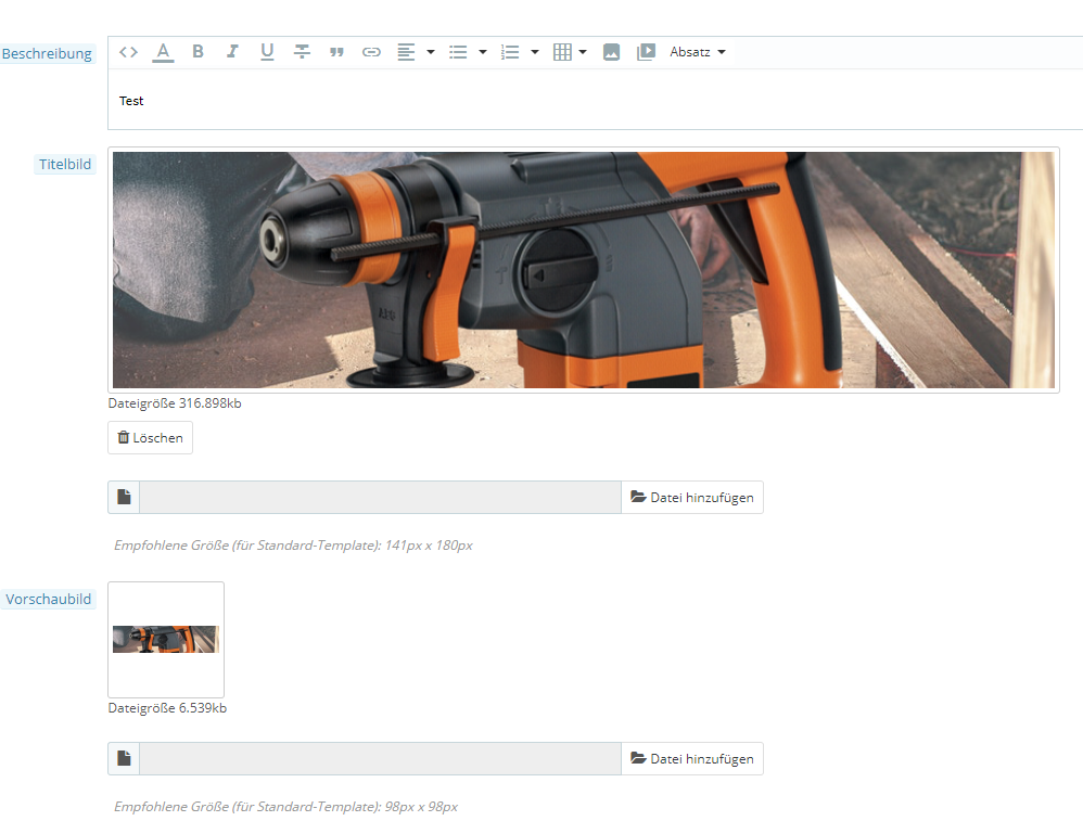 dingedong Posted August 8, 2017 Author Share Posted August 8, 2017 Soo nach der Freude kam dann auch schnell die Ernüchterung. Nachdem ich ein Bild eingesetzt habe, wird dieses automatisch als Vorschaubild in der Kategorie verwendet, aber das Titelbild wird nicht angezeigt. Im Backoffice habe ich das Bild unter dem richtigen Punkt hinzugefügt. Zu sehen hier: https://www.dingedong.com/26-bohrhaemmer Link to comment Share on other sites More sharing options...