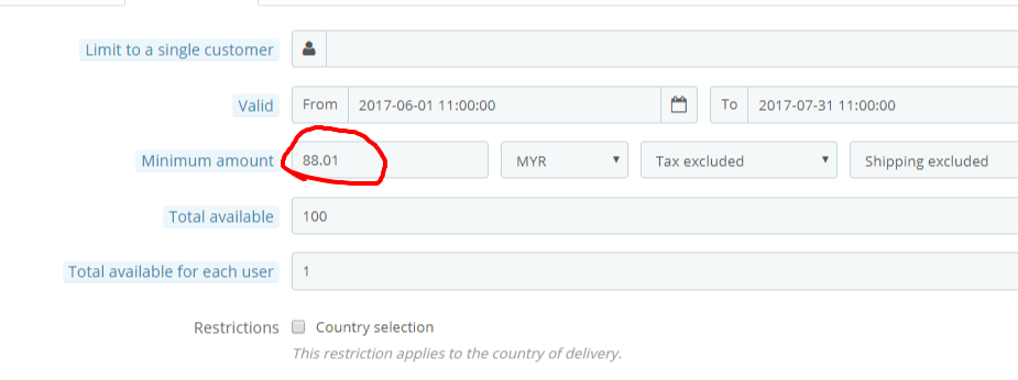 RobertCR Posted August 9, 2017 Share Posted August 9, 2017 Well, If I don't make any mistake another strange thing is that your selected period for the campaign is from 2017-06-01 to 2017-07-31 and we are in 2017-08-09 at the moment, why is it still working? Try with another product, not the discounted one, maybe there is a bug and it verifies the total price of the product(which is 110 RM) not the discounted price. Link to comment Share on other sites More sharing options...